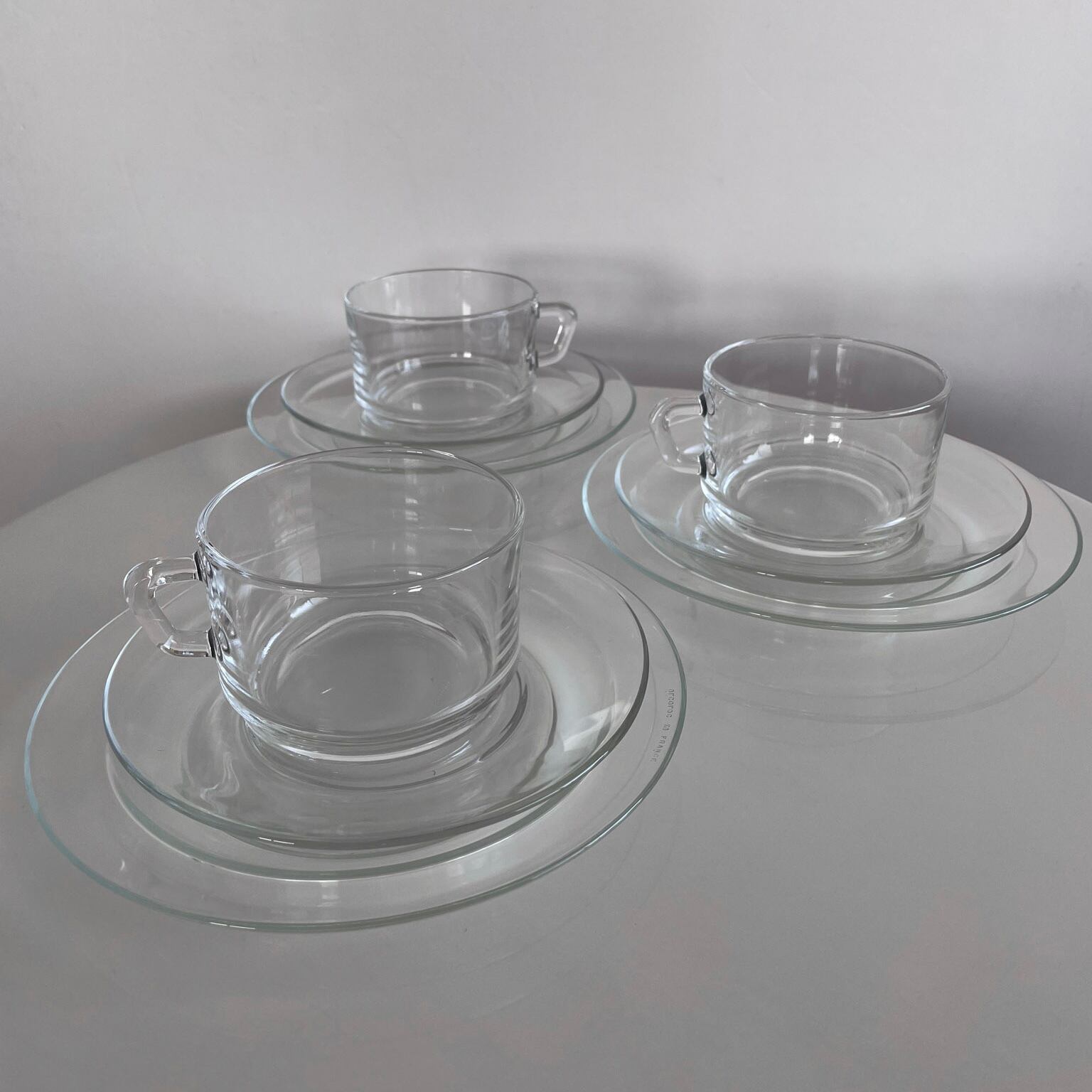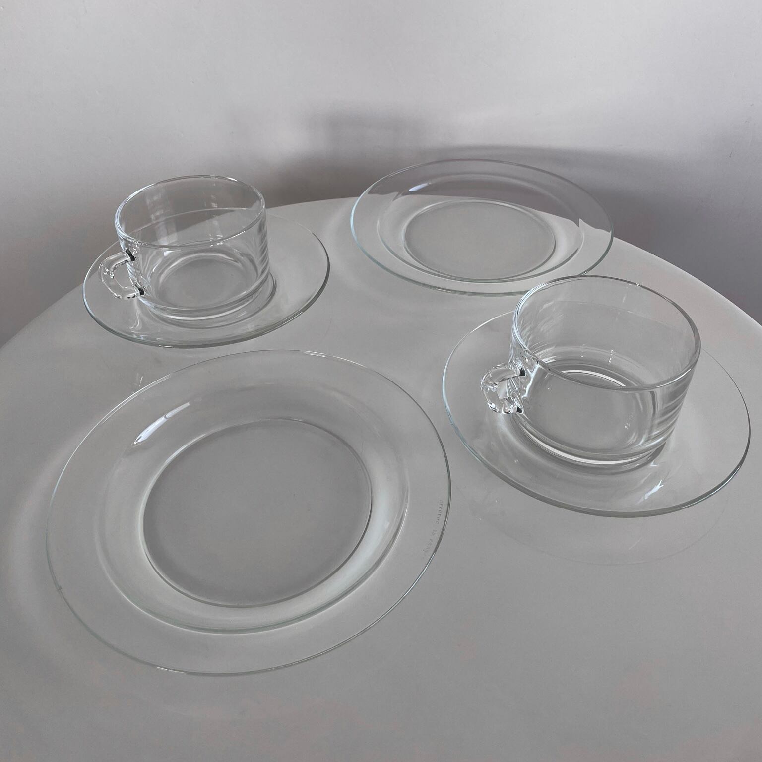 1970年代 フランス製 耐熱ガラスのカップソーサー&プレートのセット。