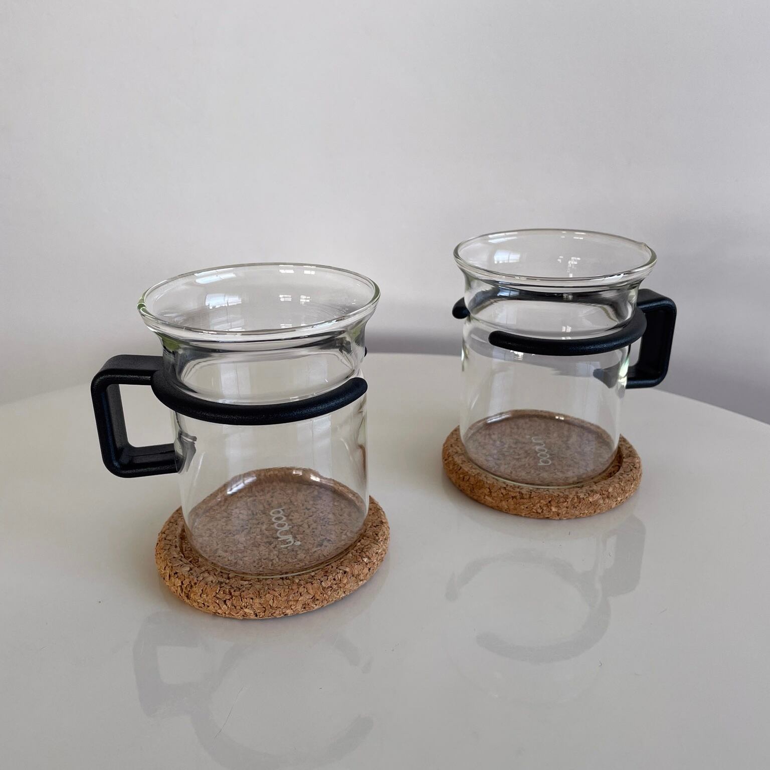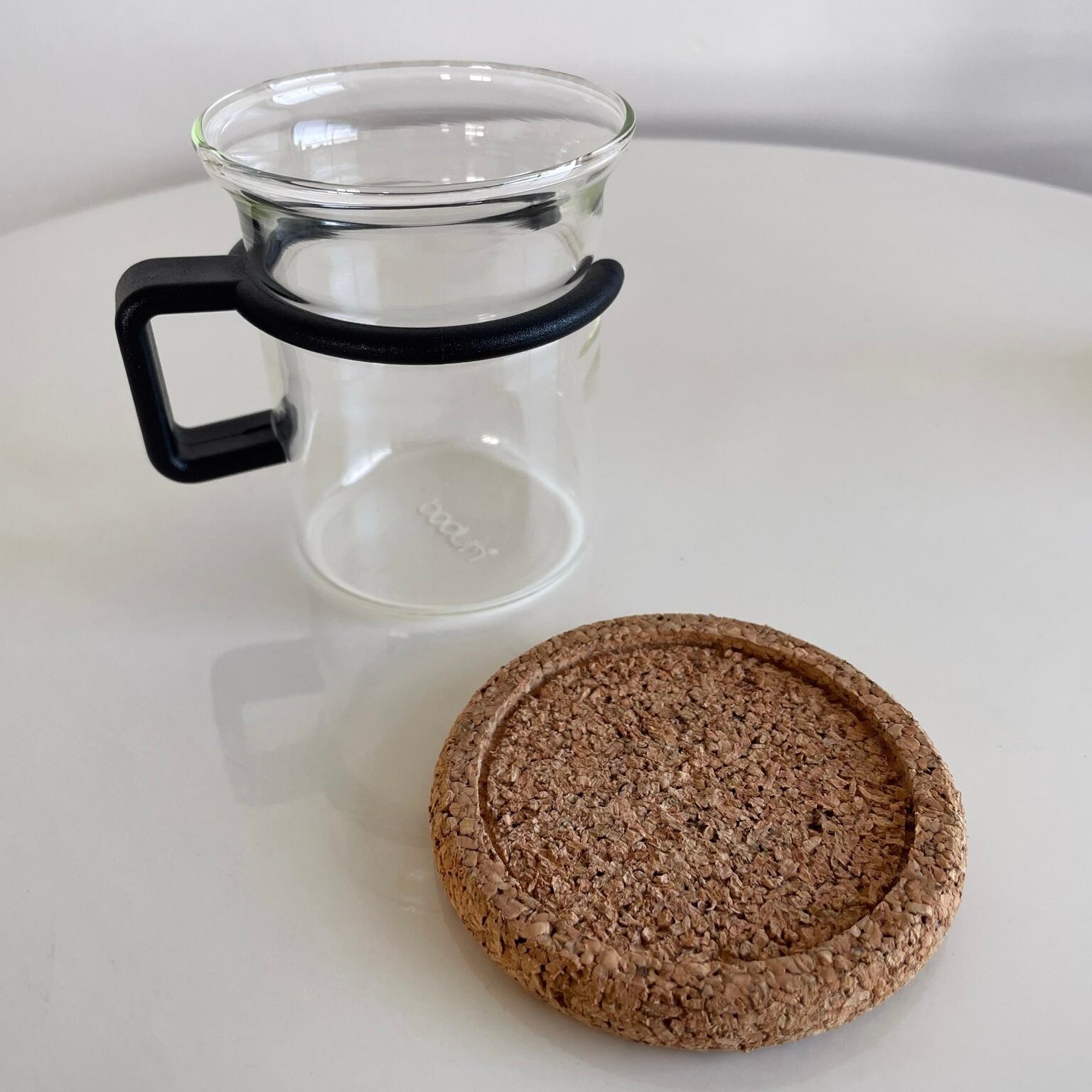コルク素材のコースターがセットになった、コーヒーカップ。