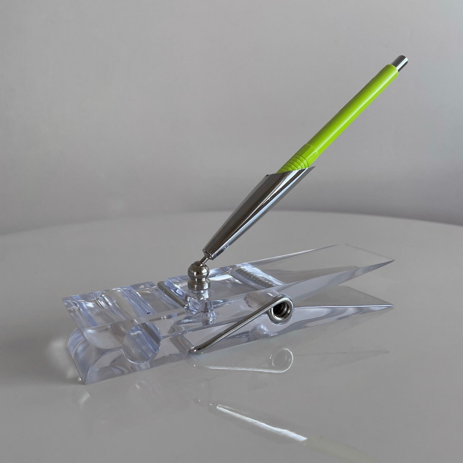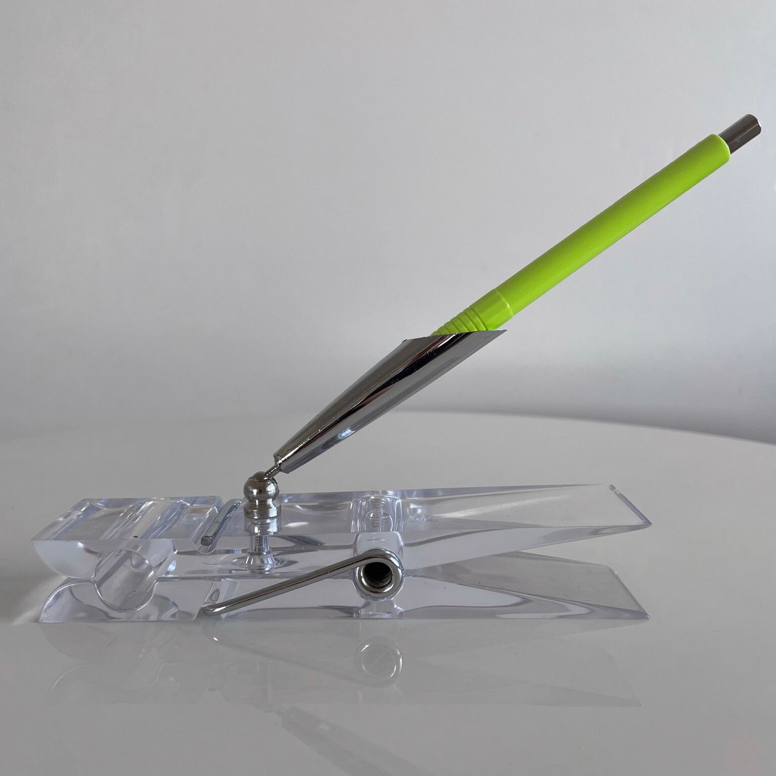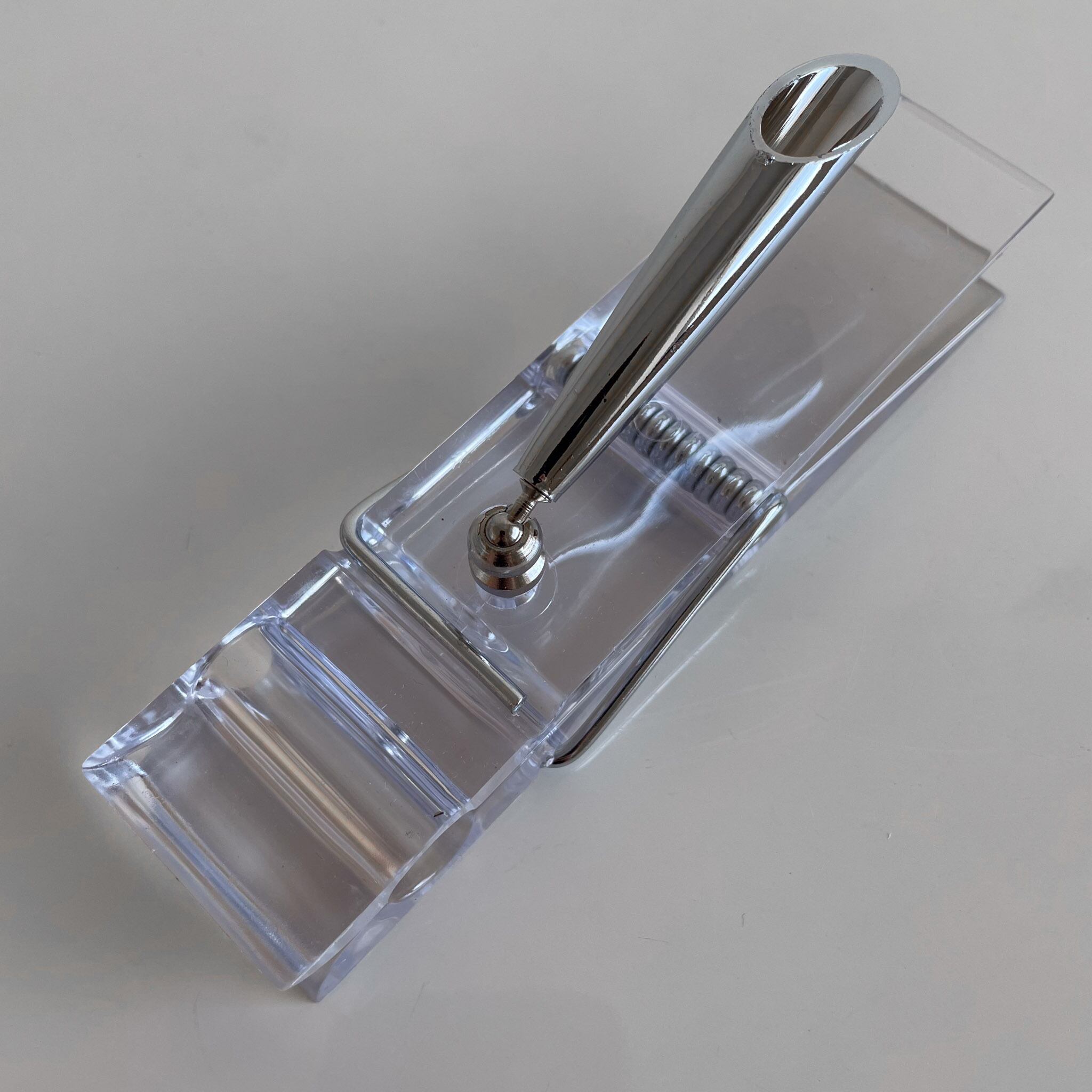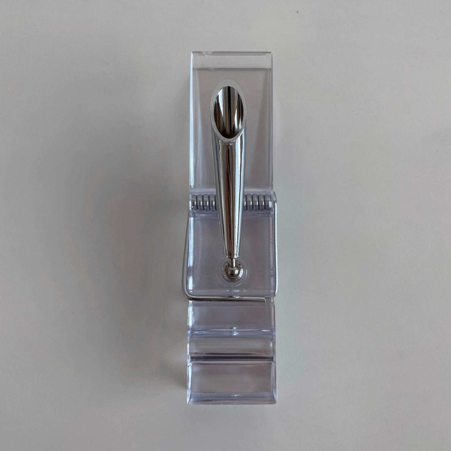 1970年代 ペンホルダー付きのアクリル製のメモクリップ。