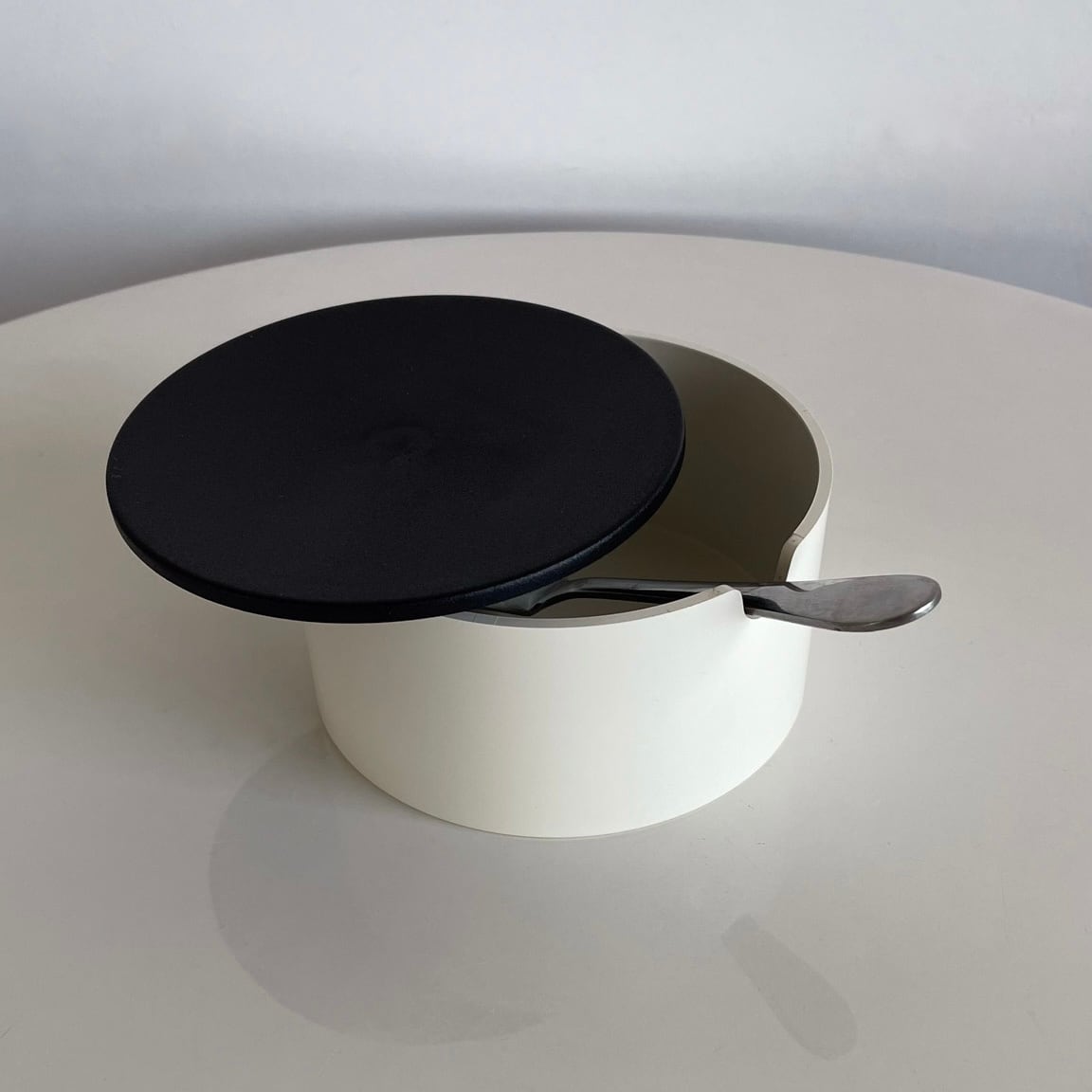 アイボリー色とパキッとしたブラックのフタのコントラストが◎