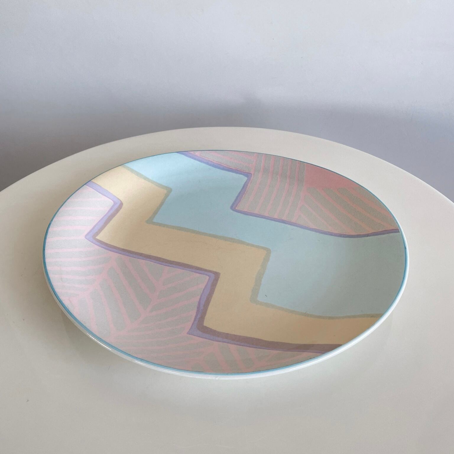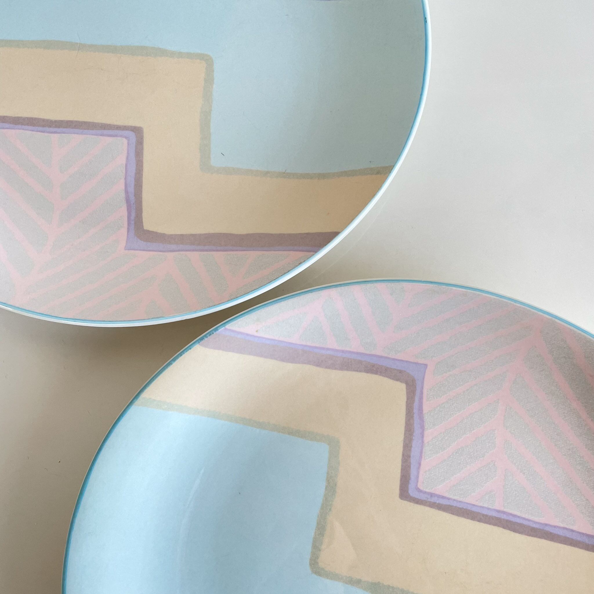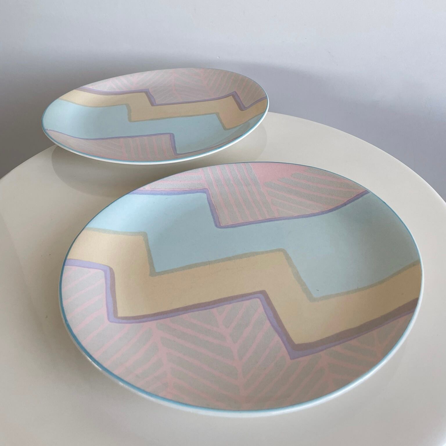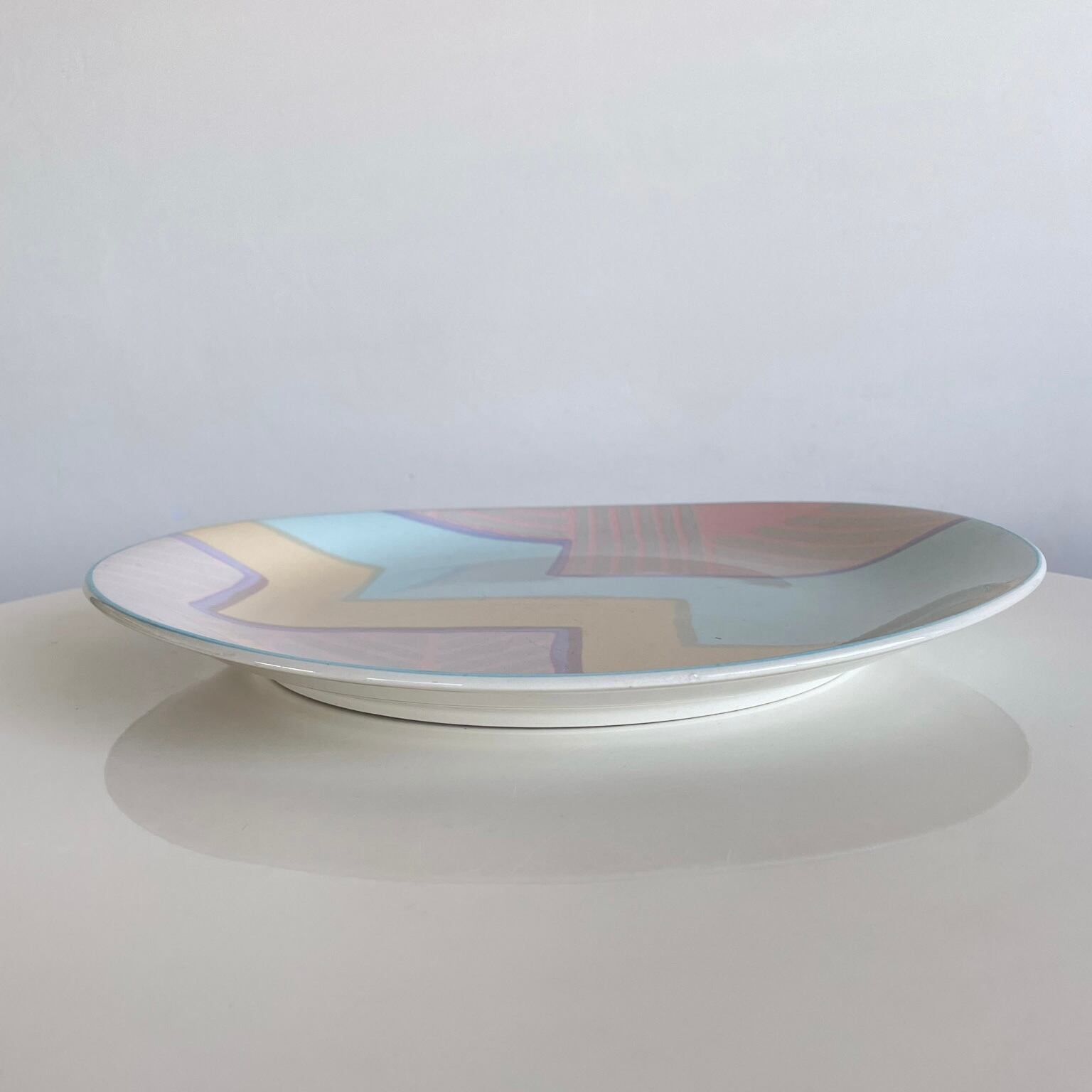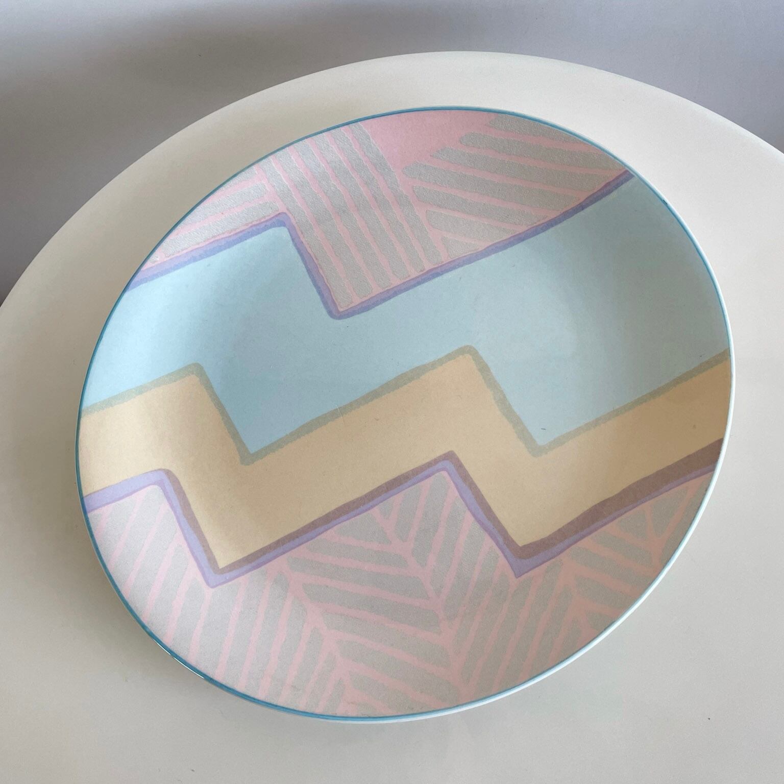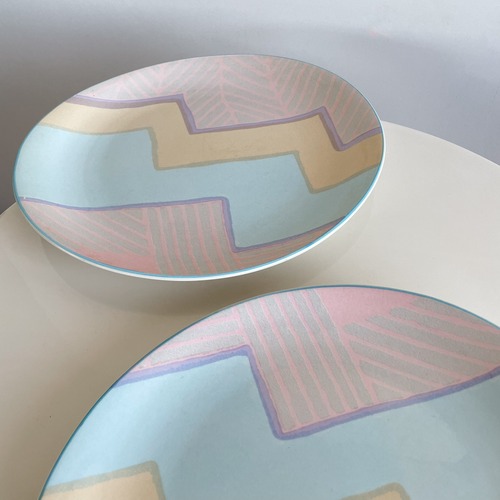 パステルカラーが目を惹く、幾何学的なポストモダン柄となっています。