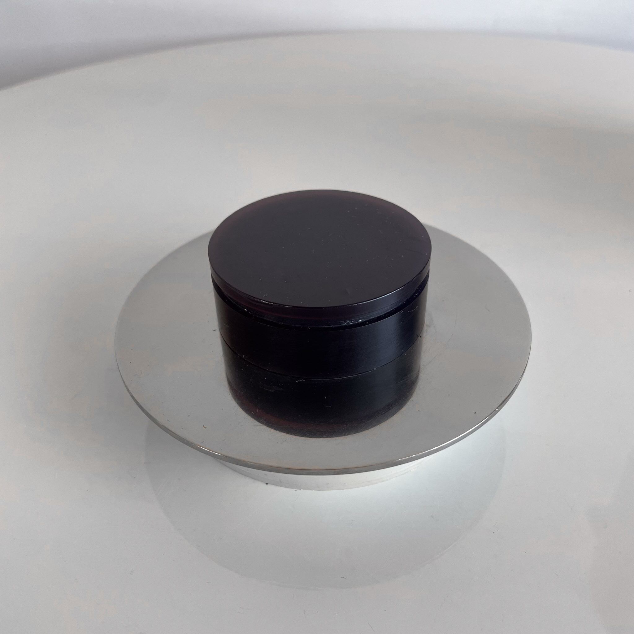 持ち手とフタ部分はブラックに近い、ダークブラウンの樹脂素材。