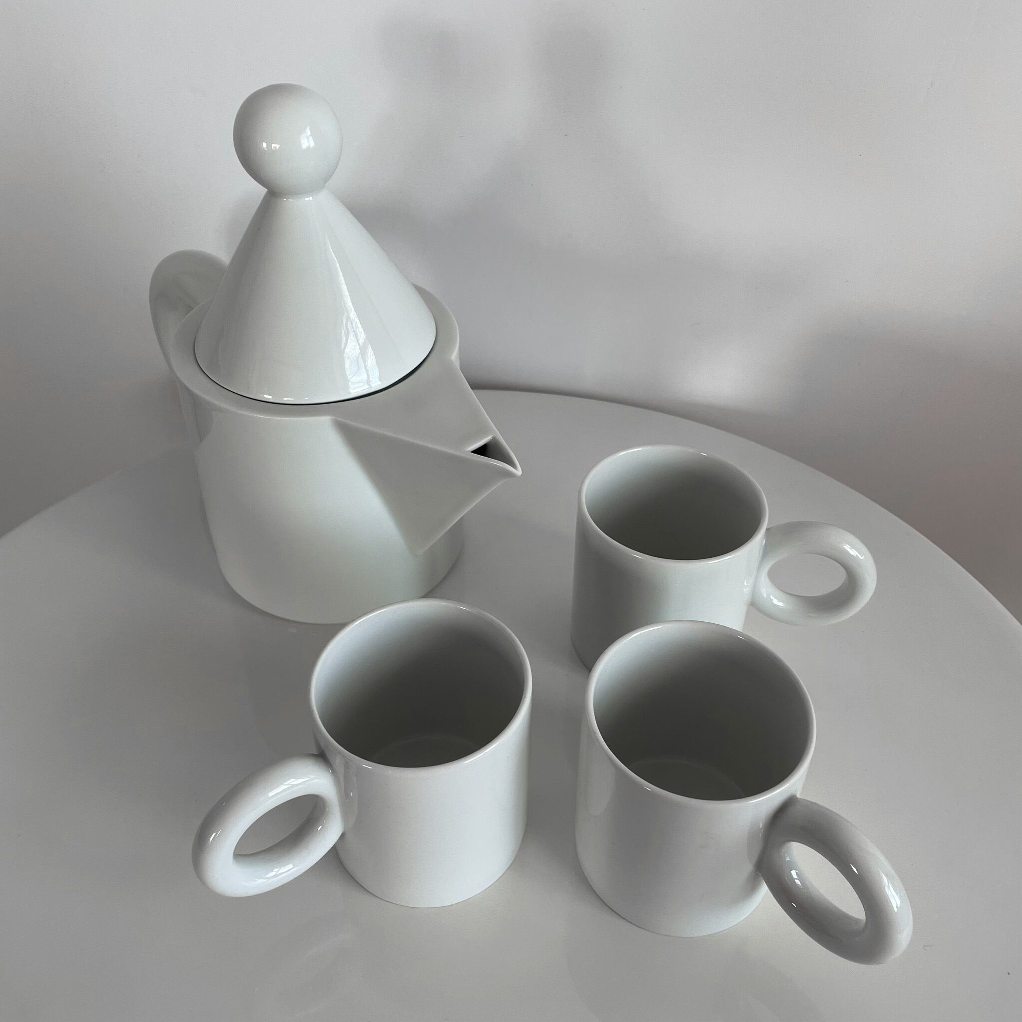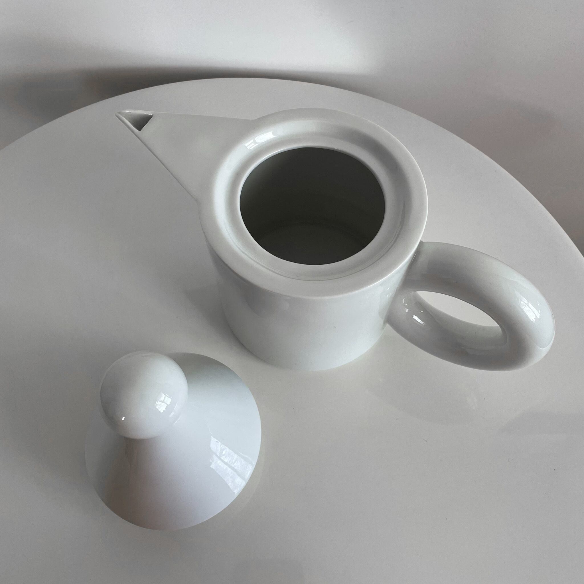 艶感あるホワイトに、ティーポット・カップにあるサークル状の持ち手が目印になります。