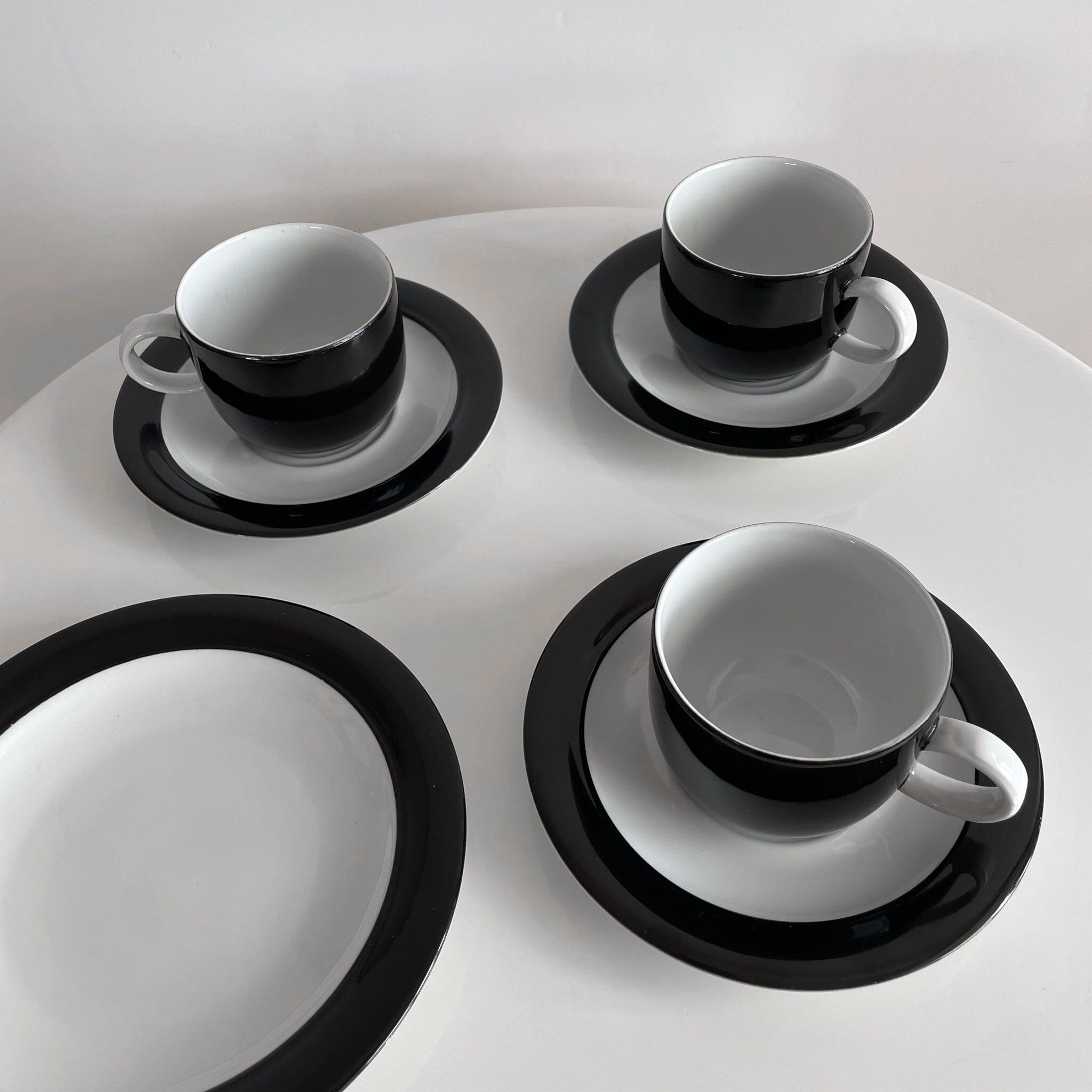 ブラック×ホワイトの組み合わせは一見シンプルですが、カップの取っ手はホワイトだったり、プレートの端はブラックで囲ったり、どことなく個性的な雰囲気があるアイテム。