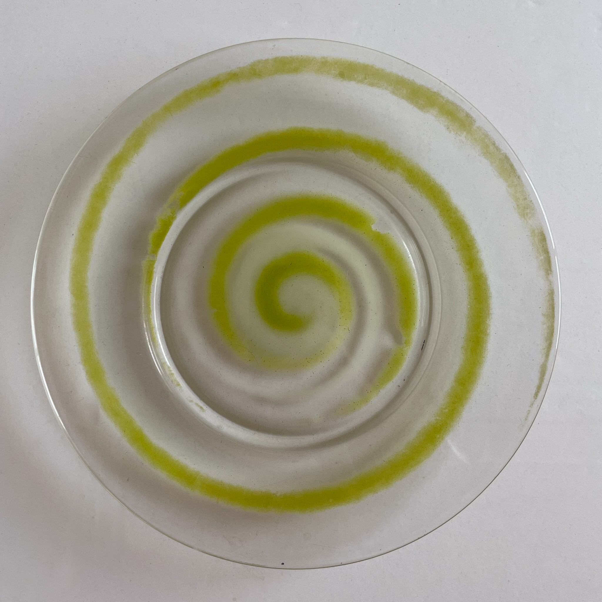 ライムグリーンとホワイトのカラーが渦を巻いたクリアプレート。