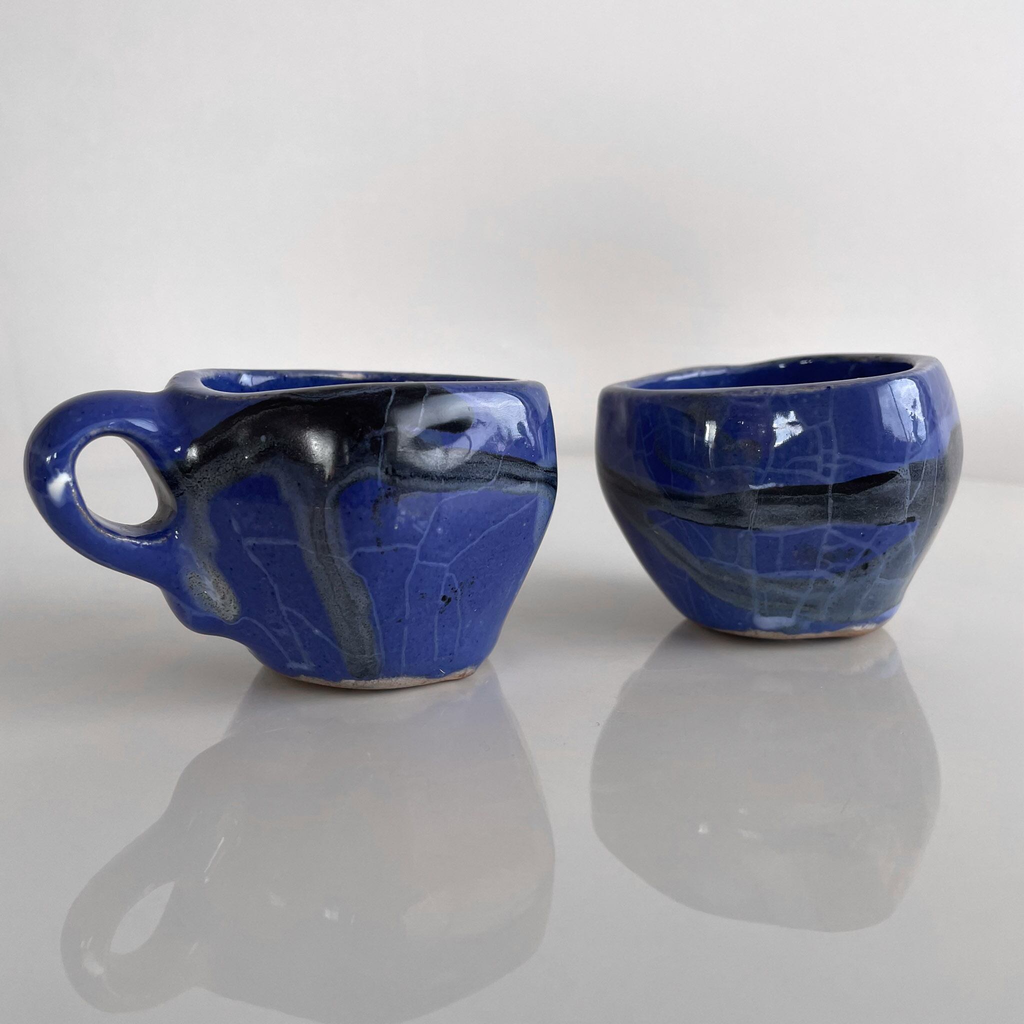 濃い紺色に近いブルー、エスプレッソとの色合いもgoodです◎