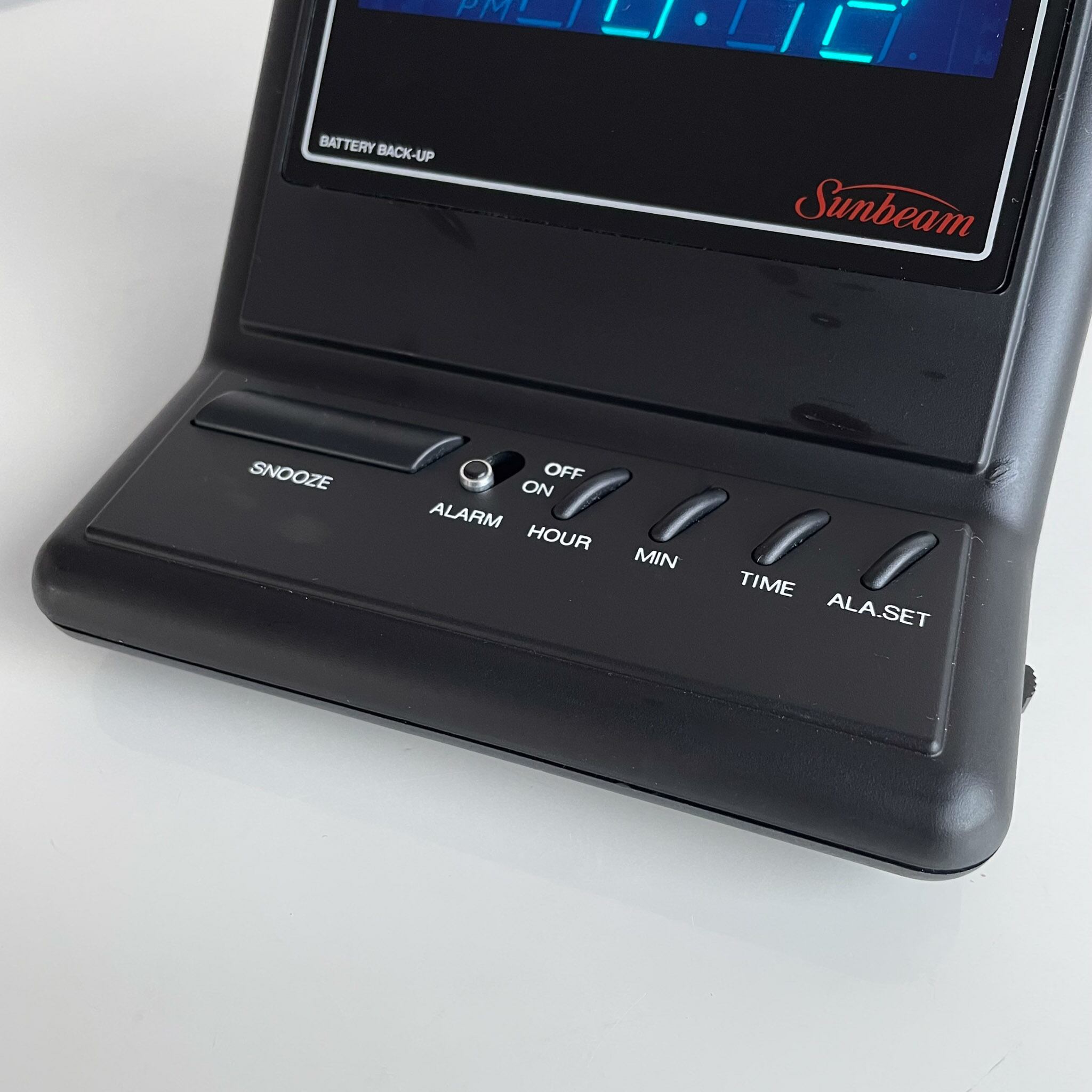 ベッド脇、キッチン棚などなど、無駄な幅も取らず、重宝するアラームクロックです。