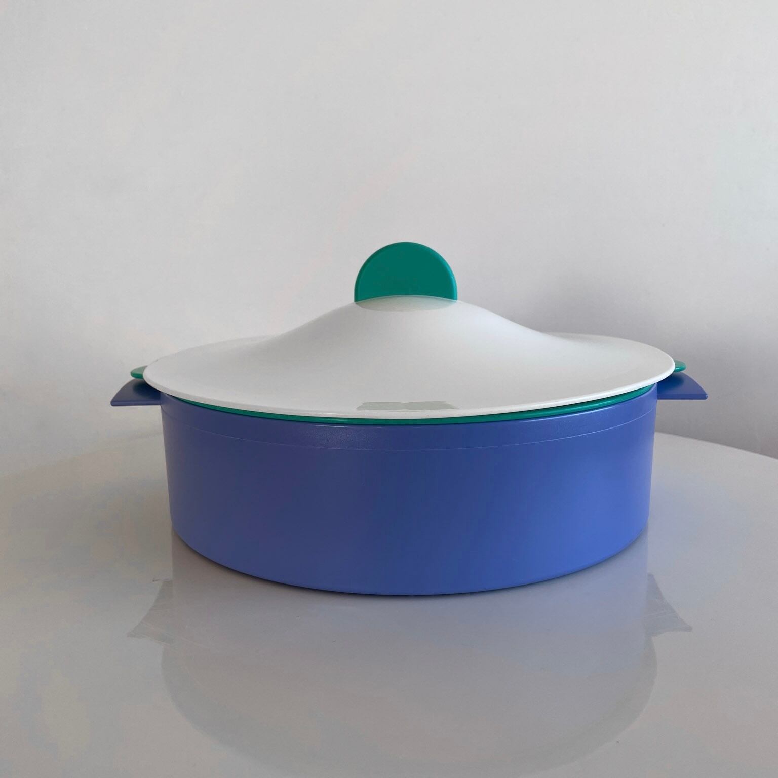 利便性もしっかりしており、ブルーのポットに少量の水を入れ、グリーンのザルに野菜やパン、フードを盛って、レンジで加熱調理が◎